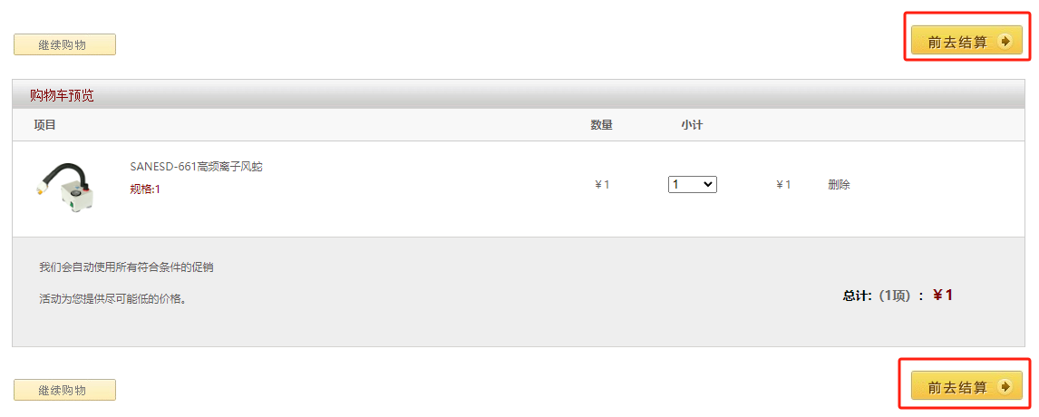 3、选定好商品后进入购物车点击“去结算”。